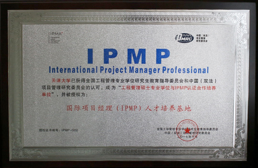 2017年9月25日,全國工程管理專業學位研究生教育指導委員會與中國(雙法)項目管理研究委員會(PMRC)暨國際項目管理專業資質認證(IPMP)中國認證委員會,正式簽訂了關于工程管理碩士(MEM)與國際項目管理專業資質認證合作框架協議,經專家組評審,我校MEM入圍首批獲準開展IPMP認證的合作培養單位。