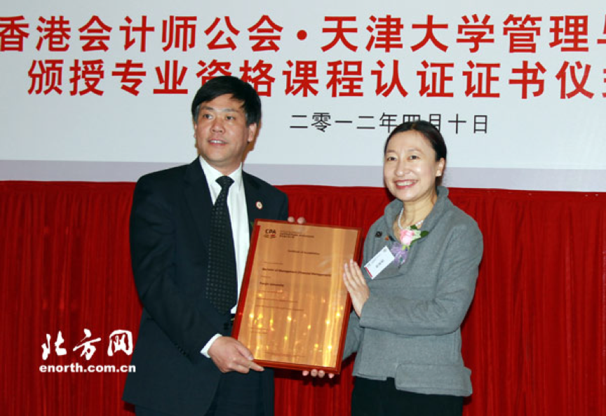 2012年4月10日,天津大學財務管理專業通過香港會計師公會(HKICPA,The Hong Kong Institute of Certified Public Accountants)專業資格課程(QP)認證。天津大學是首批通過認證的內地高校之一,標志著天津大學財務管理課程的課程體系、內容和師資等各方面,均已達到國際水平。