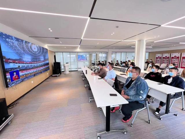 駐津央企中冶天工集團員工收聽收看大會開幕盛況。 周偉 攝