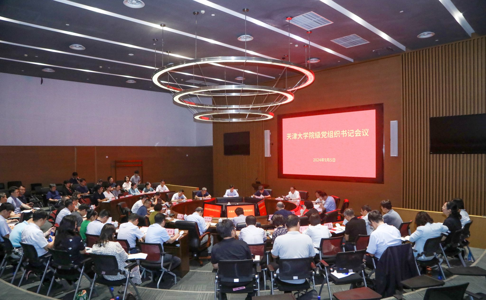 本站訊(記者 劉延俊 攝影 郭程)9月5日,學校在北洋園校區召開院級黨組織書記會。會議傳達學習習近平總書記關于黨紀學習教育的重要指示精神和中央黨的建設工作領導小組會議精神;總結我校黨紀學習教育,部署抓好常態化長效化建設。